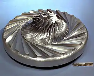 Most modern high-efficiency impellers use "backsweep" in the blade shape.[2][3][4]