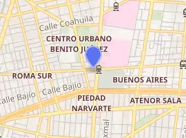 Centro Médico serves the Roma Sur, Doctores and Buenos Aires neighbourhoods.[2] It is located at the intersection of Avenida Cuauhtemoc and Eje 3 Sur Baja California, just a block north of Viaducto Miguel Alemán, an important east-west highway.[9][10] The southern exits at the Line 3 end of the station are close to the historic Panteón Francés (French Cemetery) in which important civil and military Mexican figures are buried.[9][10][11]