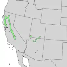 | Natural range of Cercis occidentalis | |