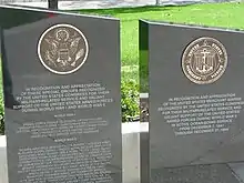 Pedestals honoring the Merchant Marine and other groups who contributed to the war efforts. These pedestals are in the vicinity, but not part of the sculpture.