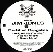 "Certified Gangstas" is a song by American hip hop recording artist Jim Jones, released as his solo debut single as well as the lead single from his debut solo studio album On My Way to Church. The song features vocals from Jay Bezel and Jones’ fellow Dipset cohort Cam'ron. The song reached number 80 on the Hot R&B/Hip-Hop Songs in the United States. Jones has said the song is an ode to West Coast hip hop legend Eazy-E's 1987 single, "Boyz-n-the-Hood", which the song samples.