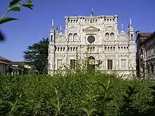 The Certosa di Pavia is a monastery and complex in Lombardy, northern Italy, situated near a small town of the same name in the Province of Pavia, 8 km north of Pavia. Built in 1396–1495, it was once located on the border of a large hunting park belonging to the Visconti family of Milan, of which today only scattered parts remain. It is one of the largest monasteries in Italy.