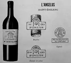 Château Angélus, until 1990 known as Château L'Angélus, or simply L'Angélus, is a Bordeaux wine from the appellation Saint-Émilion, since 2012 ranked Premier grand cru classé (A) in the Classification of Saint-Émilion wine. The winery is located on the Right Bank of the Bordeaux wine region, in the commune of Saint-Émilion in the department Gironde.