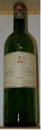 Château Pape Clément is a Bordeaux wine from the Pessac-Léognan appellation, ranked among the Crus Classés for red wine in the Classification of Graves wine of 1959. It is the oldest wine estate in Bordeaux, harvesting its 700th vintage in 2006.[1] The winery and vineyards are located in the commune of Pessac, south-west of the city of Bordeaux. When the estate was omitted from the initial Graves classification of 1953 it caused some controversy.[2]