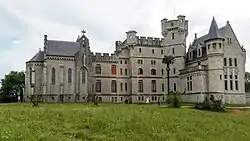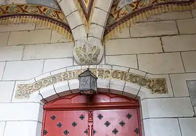 The castle is distinguished by the richness of its ornamental materials (woodwork, staff, earthenware, painting on plaster, textiles),[1] its polychrome interior decoration,[2] the eclecticism of its inspiration, from the radiant Gothic to the orientalism, very fashionable at the end of the 19th century and tinged with romanticism.