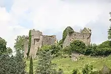 It is one of the oldest castles in Mâconnais. It consisted of a large irregularly shaped enceinte made of thick curtain walls. The entrance, to the north towards the plateau, was flanked by two fortified semicircular towers.