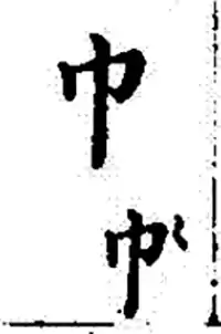 Characters for cân (top) and khăn (bottom), meaning turban/towel, in Tự Đức thánh chế tự học giải nghĩa ca. The character for khăn has a diacritic to indicate different pronunciation.