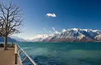 The Rhône valley on the right and the east part of the Chablais Alps on the left from across Lake Geneva