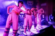 The band describes themselves as a new exciting onna-band (ニュー・エキサイト・オンナバンド, "new exciting woman band") or "NEO".[5] They aim to redefine the definition of kawaii ("cute") as "neo kawaii",[4] feeling that everyone around them was striving for a narrow definition of cute.[6] They believe that everyone is cute in their own way, and wanted to express this through their music.[8] As a theme of the band, the members of Chai decided to wear pink. They felt that actively choosing to do this was liberating, as they did not believe that the color suited them naturally.[31][23] The band uses psychological complexes as inspiration for their music.[6]