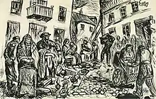 Chaim Goldberg (March 20, 1917 – June 26, 2004) was a Polish artist, painter, sculptor, and engraver. He is known for being a chronicler of Jewish life in the eastern European Polish villages (or Shtetl) where he was born, Kazimierz Dolny in eastern Poland; where he witnessed life and the recurring art colony atmosphere that he yearned for himself, and later undertook the mission of being a leading painter of Holocaust-era art, which to the artist was seen as an obligation and art with a sense of profound mission.[1]
