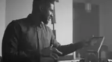 On February 2, 2016 Usher uploaded the standard music video for "Chains" on his YouTube and Vevo account. The video is directed by Ben Louis Nicholas and Daniel Arsham for Film The Future. The black-and-white video begins with the audio of Usher V, his oldest son saying "With liberty and justice for all?" and his youngest son saying "Justice for all". In the video Usher is followed by the police at night and as he runs with hands up, images of guns and people praying are shown. Later, Usher is in a church at his own memorial service, he doesn't understand until he sees the childhood pictures of himself and attempts to grab the attention of the silent mourners. During Nas's verse, Usher is pictured in the back of a police car crying.[3]
