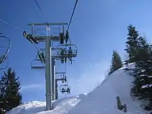 An elevated passenger ropeway, or chairlift, is a type of aerial lift, which consists of a continuously circulating steel wire rope loop strung between two end terminals and usually over intermediate towers, carrying a series of chairs. They are the primary onhill transport at most ski areas (in such cases referred to as 'skilifts'), but are also found at amusement parks, various tourist attractions, and increasingly in urban transport.