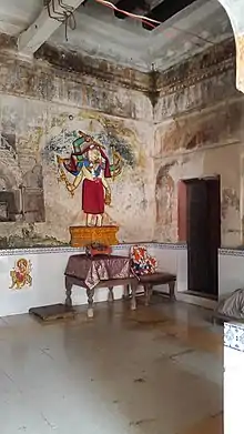 After leaving Bengal and receiving entrance into the sannyasa order by Swami Kesava Bharati,[17] Chaitanya journeyed throughout the length and breadth of India for several years, chanting the divine names of Krishna constantly. At that time He travelled on foot covering a lot of places like Baranagar, Mahinagar, Atisara and, at last, Chhatrabhog. Chhatrabhog is the place where Goddess Ganga and Shiva met, then one hundred mouths of Ganga were visible from here. From the source of Vrindavana Dasa's Chaitanya Bhagavata, he bathed at Ambulinga Ghat of Chhatrabhog with intimate companions with great chorus-chanting (kirtan). After staying one night he set for Puri by boat with the help of Local Administrator Ram Chandra Khan. He spent the last 24 years of his life in Puri, Odisha,[18] the great temple city of Jagannath in the Radhakanta Math. The Gajapati king, Prataprudra Dev, regarded Chaitanya as Krishna's avatar and was an enthusiastic patron and devotee of Chaitanya's recitation (sankeertan) gatherings.[19] It was during these years that Chaitanya is believed by his followers to have sunk deep into various Divine-Love (samādhi) and performed pastimes of divine ecstasy (bhakti).[20]