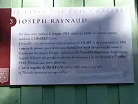 A small plaque celebrates the birth of Joseph Raynaud in 1911. He went on to join the local Maquis in the Gers and was executed by the Germans on 7 July 1944.