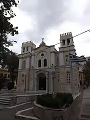 The church of Saint Paraskevi (the patron saint of the island) was the church of the Dominican Priory of Negroponte, one of the first two houses authorized for the Order of Preachers' Province of Greece in 1249. Started about 1250, this is among the oldest examples of early Dominican architecture surviving, and is one of the only early Dominican churches to retain its original form until the present.[18][19] The central arch over the iconostasis and the ceiling and walls of the south chapel are the best examples of Italian Gothic stone-carving in Greece.[20] Images of the Dominican saints, Dominic and Peter Martyr, stand at the base of the central arch.[21] The north chapel holds the tomb of the founder of the senatorial Lippamano family of Venice. Some of the column capitals are Byzantine.