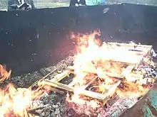 At Passover, some Hasidic Jews will not eat matzo that has become wet, including matzo balls and other matzo meal products although it cannot become chametz.[17] Such products are called gebrochts (Yiddish: broken), referring to the broken or ground matzo used for baking or cooking. Instead of matzo meal, they use potato starch in cakes and other dishes. The Hebrew term for gebrochts is matzah sh'ruyah (Hebrew: מצה שרויה, soaked matzo), but outside Israel, the Yiddish name is usually the one that is used.