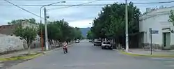 ![]() View southwest along Avenida Perón in downtown Chamical. The brushy Sierra de los Quinteros range can be seen in distant background | |