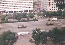 Chang'an Avenue is the road directly before Tian'anmen gate and to the north of Tian'anmen Square. Because of its location, Chang'an Avenue has been associated with a number of important events in Chinese history, such as the Tian'anmen Square protests of 1989 (including the famous confrontation of the Tank Man), the May 4th Movement and the funeral procession of Zhou Enlai. During important celebrations in the People's Republic of China, military parades are conducted on Chang'an Avenue, with the procession travelling from East to West along the avenue, passing before Tiananmen gate. For this reason, the avenue is surfaced with reinforced concrete, to prevent tanks and other heavy vehicle from damaging the surface.