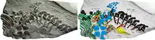 The type species Chaohusaurus geishanensis was named and described by Yang Zhongjian and Dong Zhiming in 1972, based on a fossil found during the construction of a railway. The generic name refers to lake Chao Hu. The specific name refers to the Geishan location. The holotype, IVPP V 4001, was uncovered in a layer of the Majianshan Limestone Formation dating from the Anisian. It consists of a partial skeleton, containing the skull and the front torso.[3] In 1985 Chen Lizhu named two additional species based on fossils found in the same formation: Anhuisaurus chaoxianensis and Anhuisaurus faciles.[4] However, the generic name had already been preoccupied by the lizard Anhuisaurus Hou 1974. Therefore, Anhuisaurus Chen 1985 was in 1991 renamed into Chensaurus by Jean-Michel Mazin e.a.[5] In 1998, Ryosuke Motani e.a. established that the Chensaurus fossils represented remains of juveniles, with those of C. faciles being the youngest,[6] and that these formed a growth series with Chaohusaurus.[7] This implied that the known material of Chaohusaurus was increased with the specimens AGM P45-H85-25, the holotype of Chensaurus chaoxianensis; AGM P45-H85-25, the holotype of Chensaurus faciles; and the front flippers IVPP V 11361 and IVPP V 11362.[6] In 2001 a detailed description of the osteology of Chaohusaurus was published by Michael Maisch.[8]