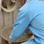 Chaoqi originated in Yuanqu County, Shanxi province, China a long time ago. Due to the lack of modern transportation back then, journeys were long. They may feel nostalgic and unaccustomed to the climate outside of their hometown. As a result, they will bring Chaoqi with them because the dough is produced by the water, flour and soil from their hometown.[1] Chaoqi gets easily spoiled and needs a preservative. To save the dough better, it is covered with an outer layer of Guanyin Clay (A.K.A Kaolinite).[2] Chaoqi was listed as an intangible cultural heritage of Shanxi Province on April 24, 2009.[3]