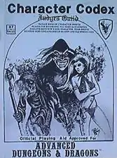 Character Codex is a players' aid, a book of character record sheets, each with an illustration portraying a character of the appropriate class. It also includes an equipment price list.[1]