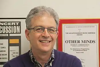 Amirkhanian received his Master of Fine Arts from Mills College in 1980, where he studied electronic music and techniques of sound recording.[2] He was music director of Pacifica Radio's KPFA-FM in Berkeley, California, from 1969 to 1992, and he was a lecturer at the University of San Francisco from 1977 to 1980.[2] He co-directed the Telluride Institute's Composer to Composer festival in Telluride, Colorado, between 1988 and 1991. Amirkhanian is the executive director and artistic director of the Other Minds Music Festival in San Francisco, which he co-founded with Jim Newman in 1992. He has played a key role in recording and championing the work of Conlon Nancarrow and George Antheil, among others.[3]