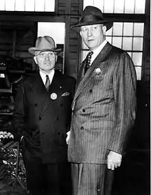 ![]() Charles Moore (right) with US Senator Harry S. Truman at the Joshua Hendy Iron Works (1942) | |