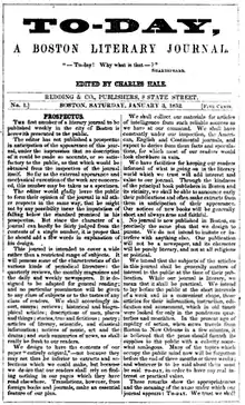 - To-Day: a Boston Literary Journal. v.1 (January–June, 1852); v.2 (July–December, 1852).