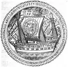 On 1 February Howard wrote to Walsingham: "It doth appear no less by your letter but that we may assure ourselves that Scotland is the mark which they shoot at to offend us, and therefore most necessary to provide for that...for my own part, had rather be drawn in pieces with wild horses than that they should pass through Scotland and I lie here".[14] On 14 February Howard again wrote to Walsingham that Elizabeth would be "no good housewife for herself" if she refused to grant James VI a pension for his support for England rather than Spain.[15] Howard wrote on 21 February: "I have been aboard every ship that goeth out with me, and in every place where any may creep, and I do thank God that they be in the estate they be in; and there is never a one of them that knows what a leak means...there is none that goeth out now but I durst go to the Rio de la Plata in her".[16] On 29 February he wrote to Burghley: