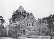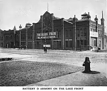 Charles L. Hutchinson saw the Art Institute thru every move and building program from the time of its founding until the time of his death in 1924. The institution’s first headquarters were located in Pike's Building at 170 State St.[33] in the rooms of the recently defunct Chicago Academy of Design. They remained there until May 1 of 1882, when Hutchinson recognized that the growth of the organization required a larger facility that featured more artist-friendly accommodation. At that time the group relocated to rooms on the second floor of the D Battery Armory on Michigan Avenue[34] (located just north of where today the Allerton Building of the Art Institute is located). The drive for what was intended to be a permanent facility also began that year when Hutchinson acquired a lot at the southwest corner of Michigan Avenue and VanBuren Street that had built on it a two-story commercial building that was leased in part to a medical college, for which he advanced the Art Institute the purchase price of $45,000.[35] The Art Institute moved its offices into the vacant part of the building,[36] and subsequent to the purchase a three-story addition of pressed brick was built on the back portion of the lot. Classes moved from the armory into this new space on January 8, 1883 [37] and these accommodations remained the extent of the Art Institute's real estate holdings until 1885, when the lot to the immediate south was acquired for expansion. Because of the organization's continued rapid growth the medical college building was demolished in 1885 and a new building by John Wellborn Root was built around the 1882 structure to provide more classrooms, galleries and museum space, with a portion of the building set aside for artistically-oriented tenants and organizations whose rent was intended to help pay for the new building and its operations.[38] Contemporary news reports credited the efforts of Hutchinson as being the drive behind the construction of the new building and “the one man to whom the Art Institute owes its splendid status”.[39]