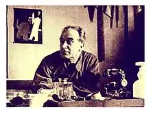 Although Loupot was most famous for his work as a commercial poster, privately he also experimented extensively with painting. These works were not intended to be sold, and were principally images of his surroundings, friends, and lovers. There is, however, some suggestion that Loupot was occasionally commissioned as a decorator at the beginning of his career in Paris, although details surrounding this are unclear.[12] Loupot's most significant contribution to painting was the chapel, Notre-Dame-de-la-Tête-Ronde à Menou, that he decorated in the 1950s.[13]