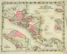 Morgan and Howard operated three steamers from the Pacific side of Panama in 1850, compared to four operated by U.S. Mail Steamship Company. Pacific Mail Steamship Company added four ships to its Pacific fleet for a total of seven, creating a competitive market for passengers in 1850. Morgan withdrew from the competition for the trade across Panama late in 1850, though he did not withdraw from the trade across the isthmus. Seeking to shorten the trip from New York to the west coast, he probed crossings several hundred miles west through a water and land route via Nicaragua. This led initially to a business alliance between Morgan and Vanderbilt, who had previously secured comprehensive right-of-way charters with the Nicaraguan government. On August 27, 1849, American Atlantic and Pacific Ship-Canal Company gained a concession for exclusive rights to construct a canal to the Pacific. In exchange for this and additional concessions, Nicaragua received cash, a right to stock in the canal, and annual cash payments. Under a separate deal, Vanderbilt also gained the right-of-way through Nicaragua using any means of transportation, which would remain in effect even if his company did not complete the canal.[22] However, this second deal was signed after a civil war split Nicaragua into rival governments. The agreement was negotiated between Joseph L. White and the conservative faction which ruled out of the city of Granada, and conveyed the rights to construct a canal to the Vanderbilt-controlled Accessory Transit Company. The parties signed on August 14, 1851.[23]