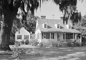 The Charles Pinckney National Historic Site is located about 10 miles (16 km) northeast of Charleston, South Carolina, on 25 acres (10 ha) of Wando Neck, a peninsula formed at the confluence of the Wando and Cooper rivers. The site has wooded and swampy areas on the eastern and western parts of the property, and a manicured grassy area with ornamental plantings around the main house. The property includes, in addition to the main house, a barn, corncrib, and caretaker's residence. A stone cenotaph was erected in the late 20th century to commemorate Colonel Charles Pinckney, the father of governor Pinckney, who had acquired and developed Snee Farm as a rice and indigo plantation. It may have replaced an historic one installed by the younger Pinckney about 1785.[4]
