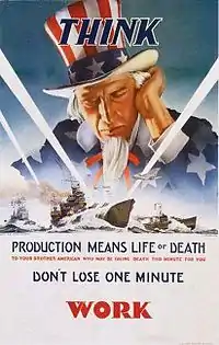When World War II broke out Chickering put his talents to use contributing to the war effort. Recognized for his illustrating ability working for the Army during the first world war he was commissioned by the government and designed recruitment posters for the Navy Department. Among his most famous posters was the Uncle Sam poster of 1942. He also designing posters that promoted awareness and the need for successful civilian war production.[2]