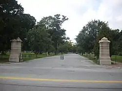 ![]() The gated entrance to Evergreen Cemetery, which Goodell laid out in 1855 | |