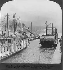 E.W. Spencer operated Spencer as an independent enterprise. Although steamboat racing was technically illegal, operators of steamboats often tried to "do their best" when a rival steamboat was on the river. Spencer as a prestige boat was frequently raced against other top vessels of the day, including Bailey Gatzert and T.J. Potter.[1] Races against the Bailey Gatzert happened almost every day when the two vessels ran against each other on the Portland-The Dalles route.[4] It has been reported that at one time in 1906, when Spencer was running behind Bailey Gatzert, the captain of Spencer made up the time by running the Cascades Rapids (an extremely risky undertaking) while Bailey Gatzert was moving through the Cascade Locks .[5]