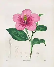 From 1825 to 1848, John Newman was head of the Royal Botanic Garden at Pamplemousses. He regularly corresponded and exchanged specimens with notable figures in the botanical world, including William Jackson Hooker. The gardens displayed plants from Madagascar, Australia, the East Indies, China and South Africa. Some of these plants were illustrated in a report from Newman to the Colonial Office in 1829, including Bignonia telfairia from Madagascar. Newman named it after Annabella Telfair (d. 23 May 1832 Port Louis), a botanical artist, plant collector and wife of Charles Telfair, whom she had married in 1818. Some of her illustrations appeared in Curtis Botanical Magazine between 1826 and 1830, while her letters to Hooker are preserved at Kew.[5][6] Telfair's collections were donated to the Zoological Society of London, but were dispersed and effectively lost when sold in 1855.