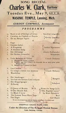 - Charles W. Clark's Recital.; The Chicago Baritone Sings in Mendelssohn Hall – The New York Times article, March 14, 1906