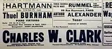In 1903, Clark gave four concerts at the Paris National Conservatoire of Music, an honor that had not been given to an American in seventy years of those concerts. He sang at the Conservatory concerts each succeeding season in Paris appearing also with the Philharmonic Society and the Cologne Orchestra.[7]
