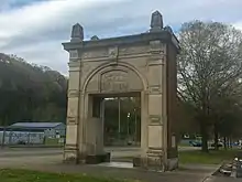 During the demolition of the school building, the entry door arches that were located on the Lee Street side were preserved and moved to the campus of the new Capital High School. The last citywide graduating class, before Stonewall Jackson High opened to ease crowding, erected the memorial.