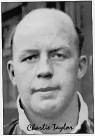 Charlie Taylor's birth was registered in York, he served in the Royal Navy on destroyers during the Arctic convoys of World War II, and in the English Channel and Mediterranean until 1946.[3] He worked at Rowntree's in York (latterly in their fire service department), he and his wife Renie, also a worker at Rowntree's, lived on Haley’s Terrace, York. He spent his last 8-years in a care home in Norton-on-Derwent, York, North Yorkshire, England, where he died from dementia. His funeral took place at York Crematorium, Bishopthorpe Road on 18 November 2013.[3]