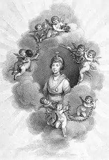 Charlotte sat for Sir Thomas Lawrence in September 1789. His portrait of her was exhibited at the Royal Academy the following year. Reviewers thought it "a strong likeness".[39] [lower-alpha 4]