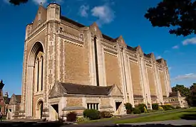 Memorial Chapel, designed by Sir Giles Gilbert Scott and consecrated in 1927, commemorates the Carthusians who died in action: 700 in World War I and 350 in World War II. The whole school meets here three days each week for a short service at 08:30, and on Friday evenings for Evensong or a School Eucharist. On Fridays, when there is an Evening service, Catholic pupils may instead attend Mass in the Founder's Chapel. Parents are welcome at Friday services, but tickets are required for Remembrance Sunday and the Carol Service.