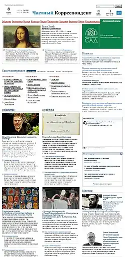 Chastny Korrespondent (chaskor.ru, also known as "Chaskor", translated as "Private correspondent") is a Russian online newspaper.[1] Chaskor is Russia's first periodical edition to switch to Creative Commons license.[2] Chaskor publishes analytical articles, reviews, interviews, and news.[3]