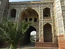 During a severe earthquake in 1846, the north-western minaret collapsed and cracks appeared in the central arch. This has however been restored as much as was reasonably possible and the gateway now looks quite as it might have been during the time of its Mughal patroness. The restoration was carried out by the Department of Archeology, Government of Pakistan in the late 1960s.[1]