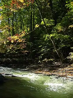 The creek is stocked with small numbers of brown trout but is more noted as a steelhead fishery, boasting the highest catch rate of any New York river at 1.4 steelhead per fishing hour.[3]
