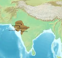 Based on Dharanivaraha's grant, it is known that in 914 CE, he, a Chapa or Chavda king, was ruling at Vardhamana (now Wadhwan) as a feudatory of Gurjara-Pratiharya Mahipaladeva. It also mentions his ancestors; Vikramarka, Addaka, Pulakeshin, Dhruvabhata followed by Dharanivaraha.[7][8][16] King Vyaghramukha of the Chapa dynasty, who was a patron of the astronomer Brahmagupta and was ruling in A.D. 628, had his capital at Bhillamala (Bhinmal).[9]