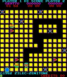 Check Man is an arcade game released by American company Zilec-Zenitone in 1982. While being a fast-paced action game, there are puzzle elements to the gameplay. The game uses the Namco Galaxian arcade board.[2]
