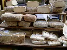 Cheese is valued for its portability, long shelf life, and high content of fat, protein, calcium, and phosphorus. Cheese is more compact and has a longer shelf life than milk, although how long a cheese will keep depends on the type of cheese.[3] Hard cheeses, such as Parmesan, last longer than soft cheeses, such as Brie or goat's milk cheese. The long storage life of some cheeses, especially when encased in a protective rind, allows selling when markets are favorable. Vacuum packaging of block-shaped cheeses and gas-flushing of plastic bags with mixtures of carbon dioxide and nitrogen are used for storage and mass distribution of cheeses in the 21st century.[3]