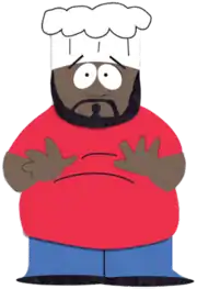 Jerome McElroy, often referred to as "The Chef" or simply "Chef", was a recurring fictional character on the Comedy Central series South Park who was voiced by Isaac Hayes. A cafeteria worker at the local elementary school in the town of South Park, Colorado, Chef was generally portrayed as more intelligent than the other adult residents of the town, and understanding to the children. His advice was often sought by the show's core group of child protagonists —Stan Marsh, Kyle Broflovski, Eric Cartman, and Kenny McCormick — as he was the only adult they completely trusted. He frequently gave completely honest advice without considering whether it is appropriate for children, usually in the non sequitur form of a lascivious soul song.